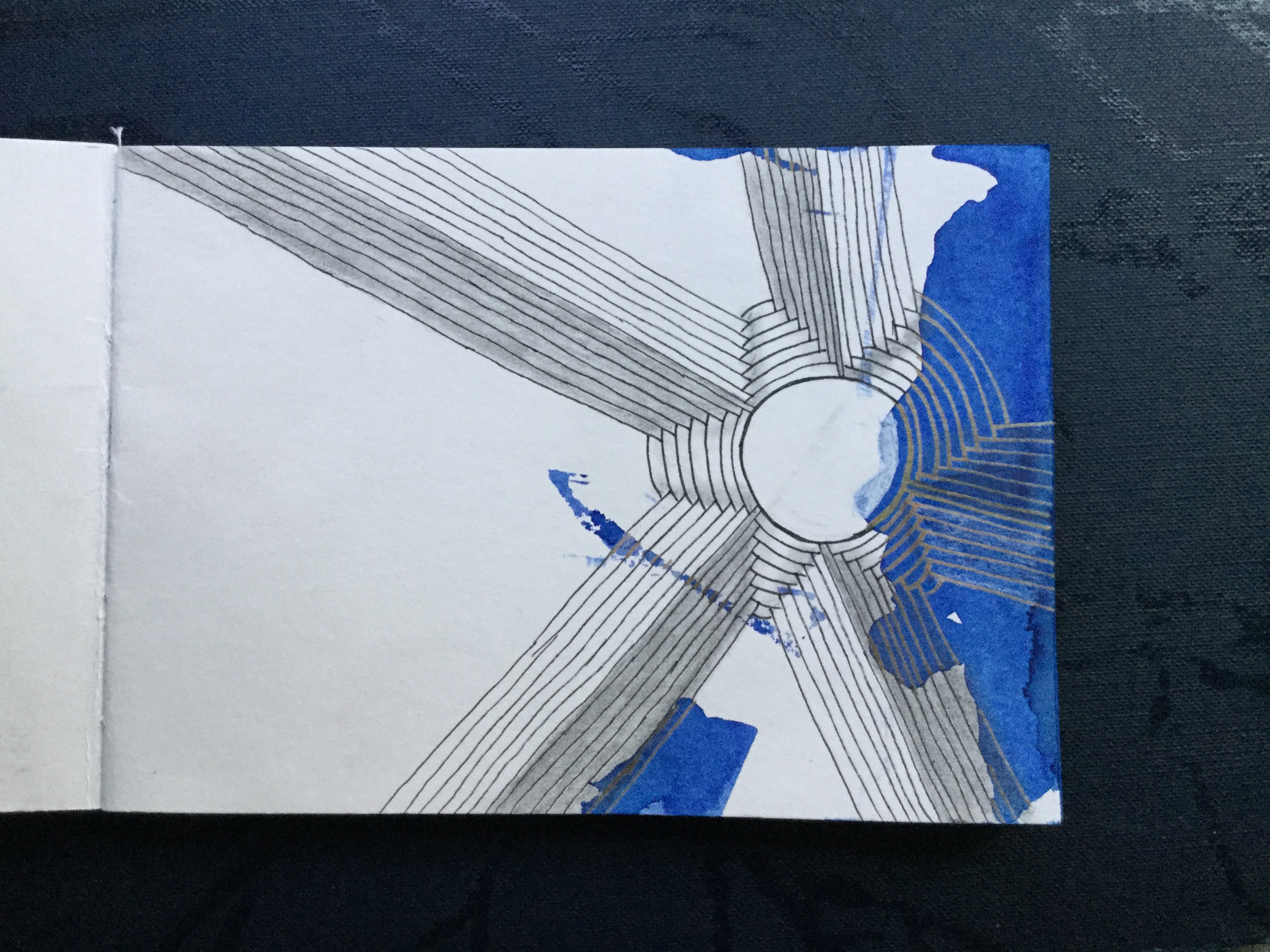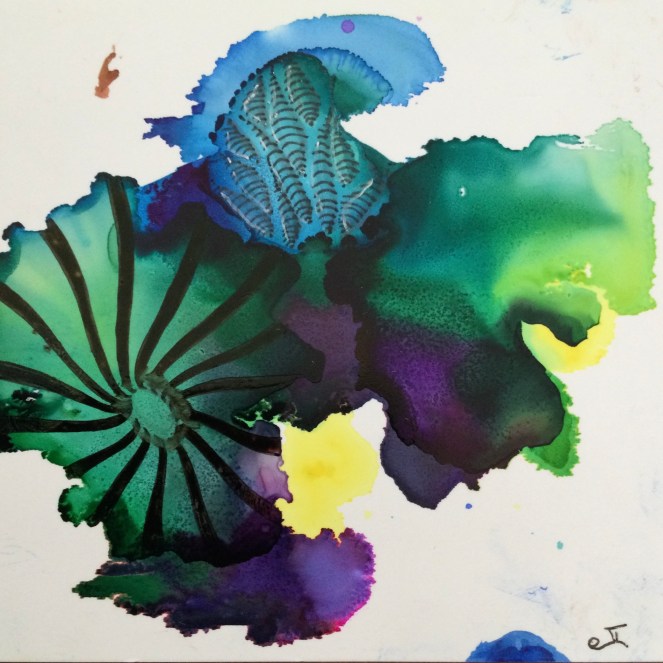 Day 8: first sketch and wash with water; let it drip and fill in with Arukas