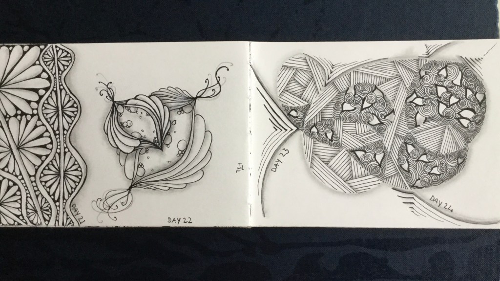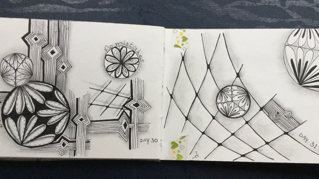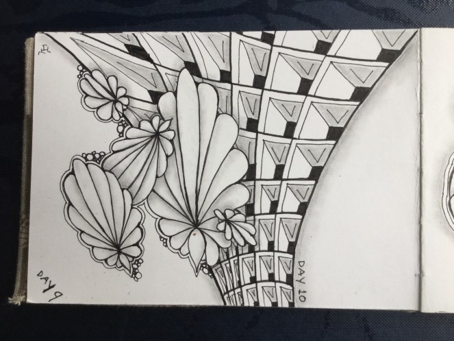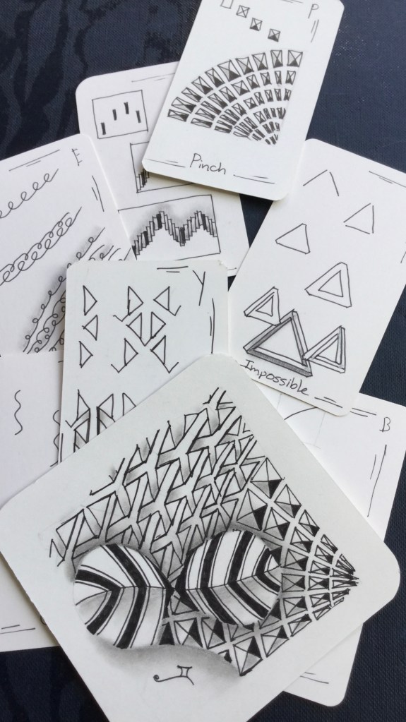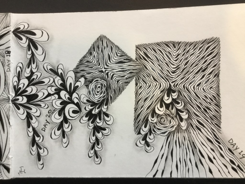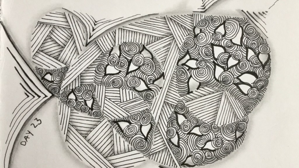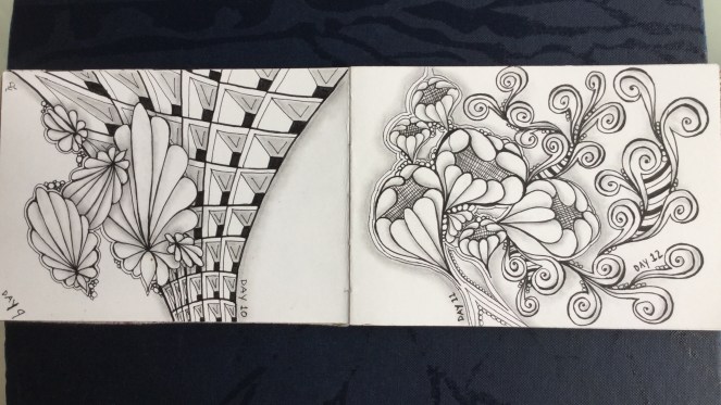 Inktober is an online event where artists all over the world challenge themselves by doing one ink drawing a day the entire month. I adapted the idea to fit with Zentangle art by making each day’s prompts be a tangle.