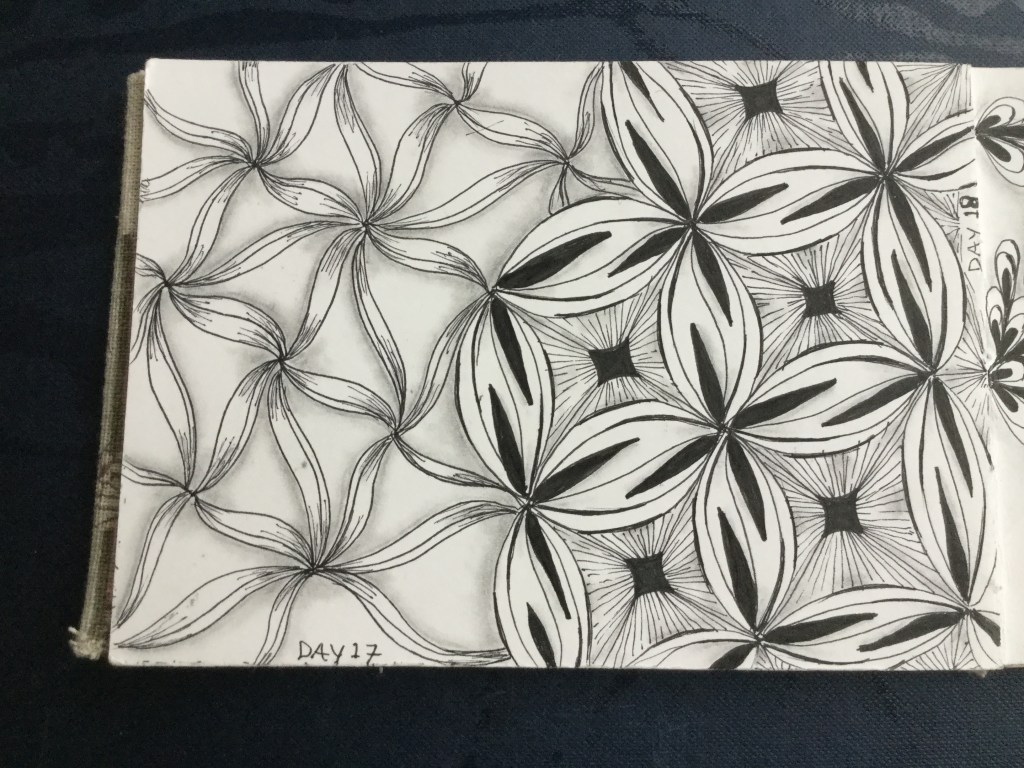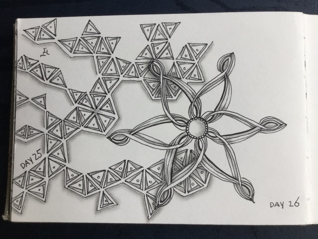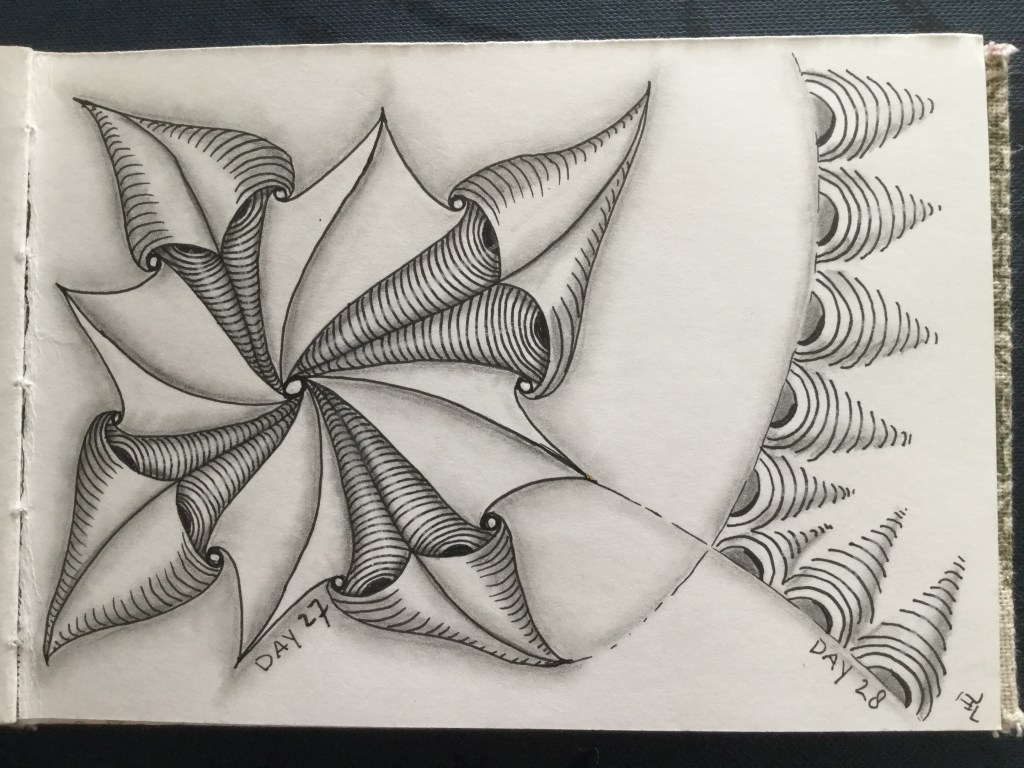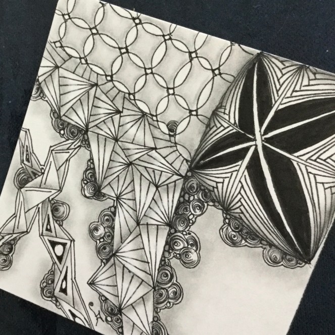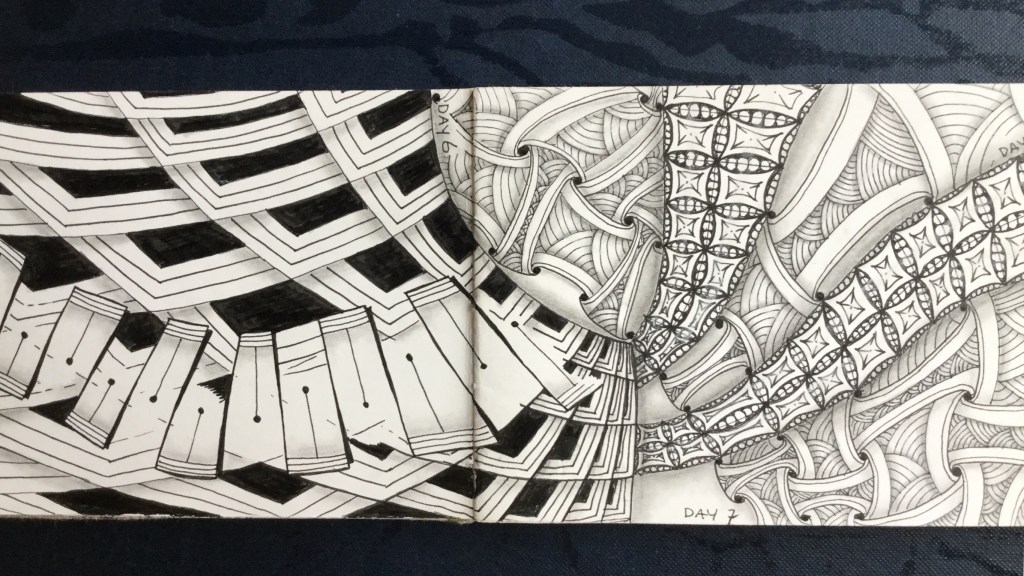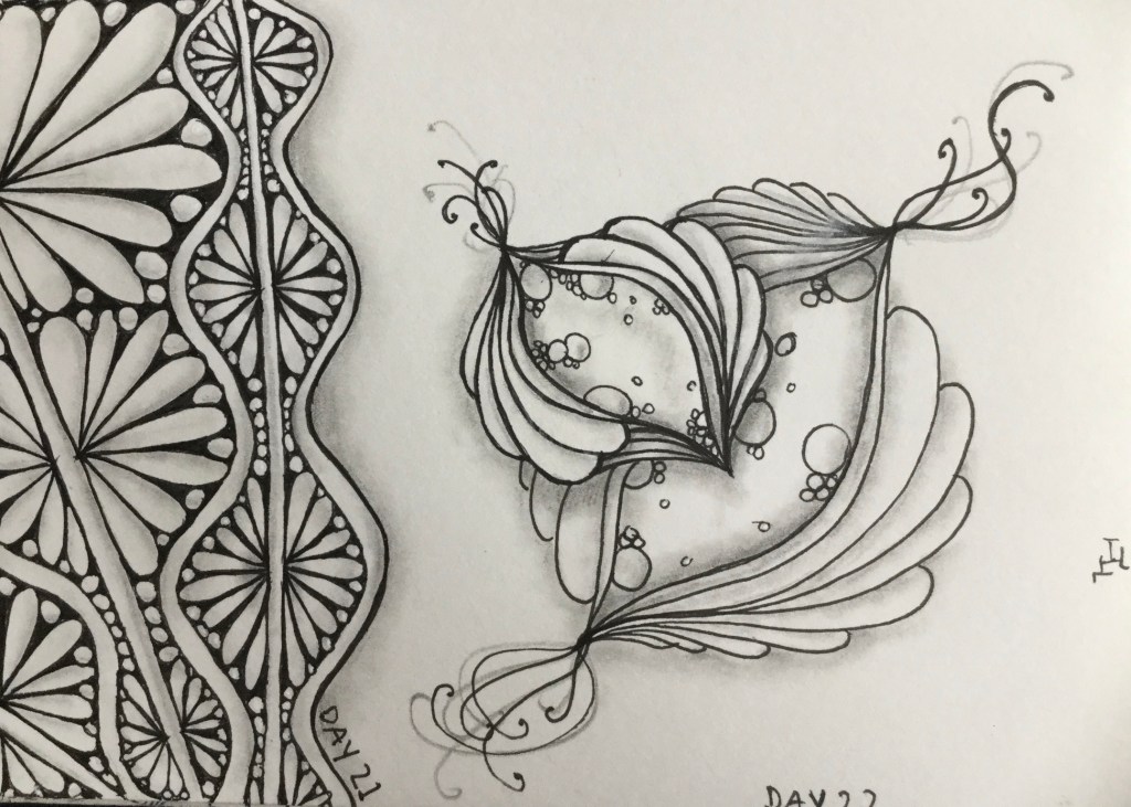 Inktober is an online event where artists all over the world challenge themselves by doing one ink drawing a day the entire month. I adapted the idea to fit with Zentangle art by making each day’s prompts be a tangle.