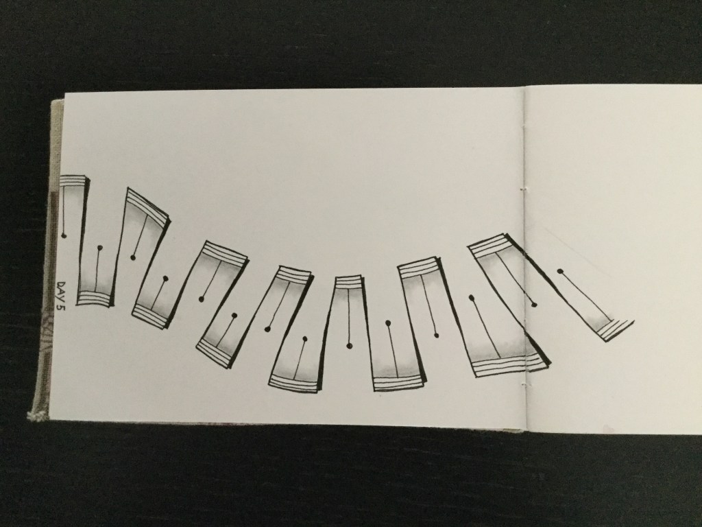 Dit is dag 1, getekend op bijou-tiles, dit zijn tiles van 5 x 5 cm