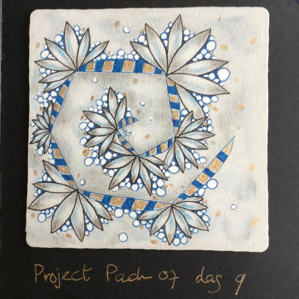 Dag 7 was op een Phi tile, dit was mijn eerste ervaring met deze afmeting. Deze is geintroduceerd in Project Pack 11, maar die heb ik nog niet gedaan. Dus dit was mijn eerste ervaring. De tangle die gebruikt is, is een van mijn favoriete: Paradox, als je hem eenmaal door hebt is deze fantastisch!