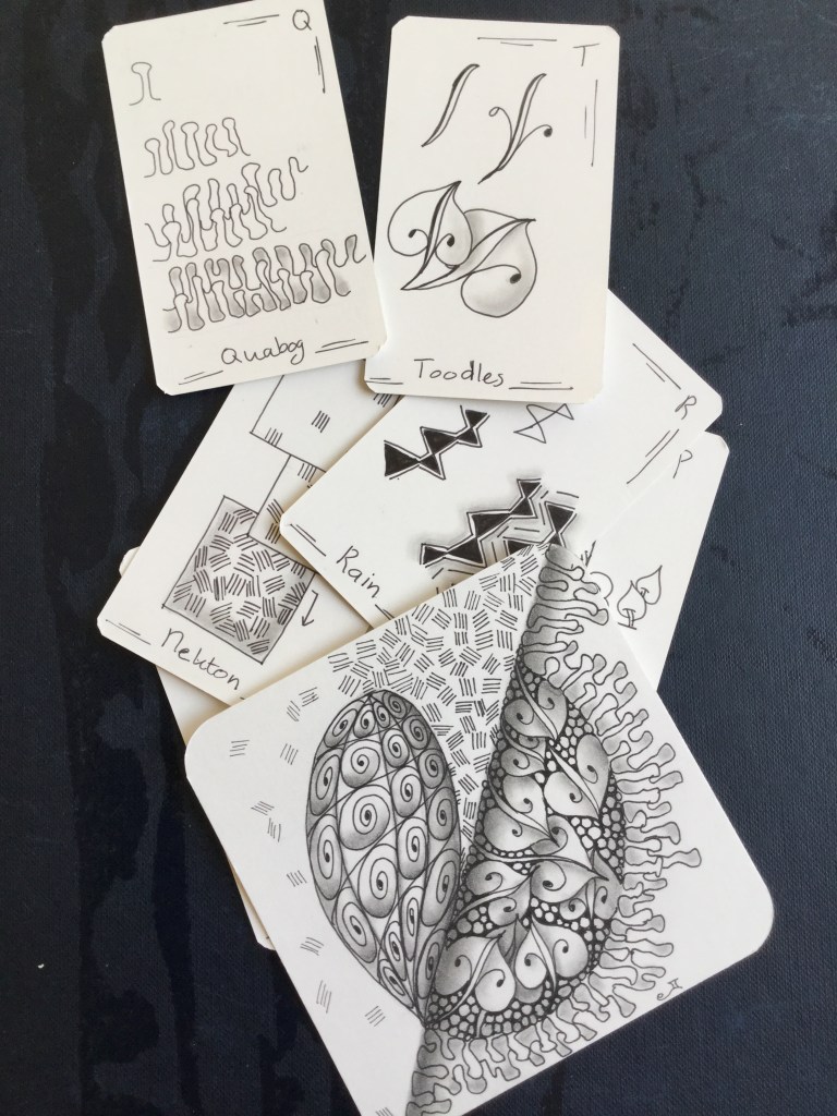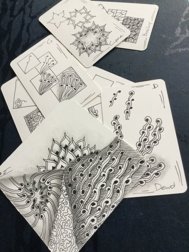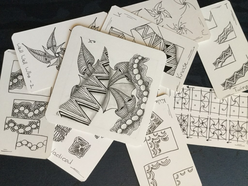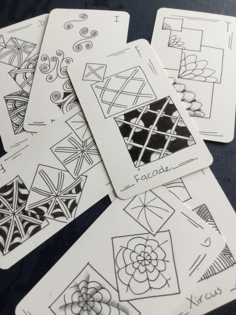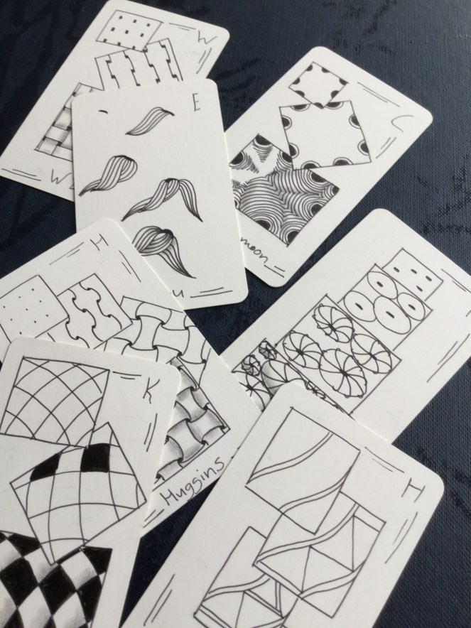 Deze week kwamen 2 grote tangles aan bod, deze passen niet op 1 kaartje. Dus: 2 kaartjes. Dit waren Well en Well well Who, met name de laatste is een prachtige. De overige tangles van deze week zijn Kule, Thing, Quipple, Knase en Wadical. En een tile 😉 Leuke week!