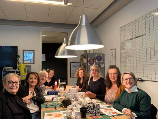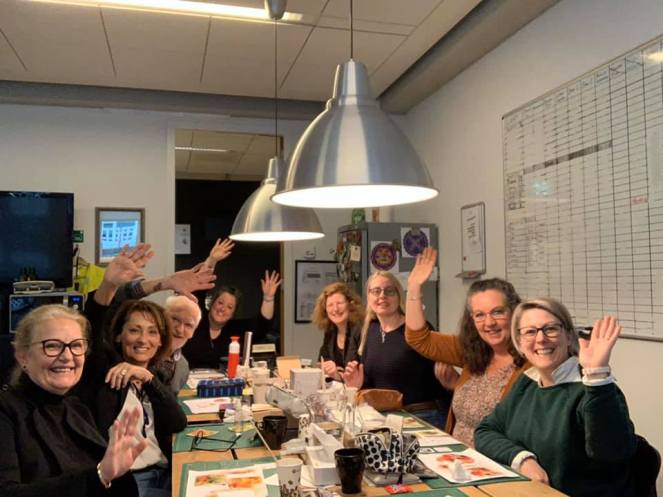 Op zaterdag 8 februari 2020 hadden we een reünie georganiseerd van CZT-ers die in mei 2019 in Frankfurt waren, de zogenaamde CZT-eu1 groep. Wie kon, kwam naar Rotterdam; uiteindelijk waren we met 8 personen: Eveline, Henriette, Jan, Ria, Annette, Petra, Doris en ik. Iedereen nam wat lekkers mee, voor bij de koffie, de lunch of tussendoor en we hadden eigen tekenmateriaal meegenomen.