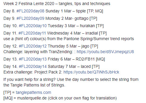 If you want help for a string? Use the day number to select the string from the Tangle Patterns list of Strings.