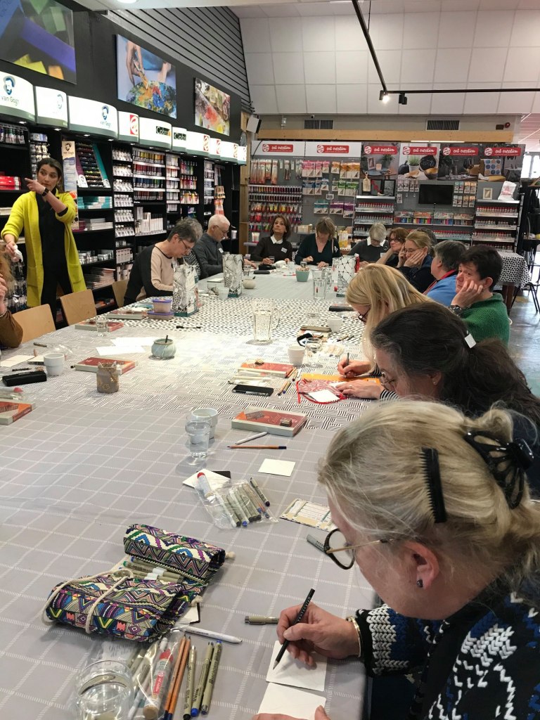 Na een gezellige ontvangst in het Experience Centrum van Royal Talens werd de groep in twee gedeeld voor een rondleiding door de fabriek. Wat was dat leuk! Ik vond het opvallend hoe gedreven het personeel was, de zorg en liefde voor het vak staat voorop en dat merk je aan alle kanten. Wat ontzettend leuk! In de fabriek mochten geen foto’s worden genomen, begrijpelijk, dus die zul je hier niet vinden.