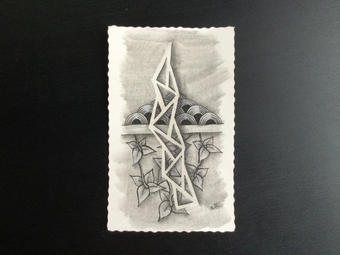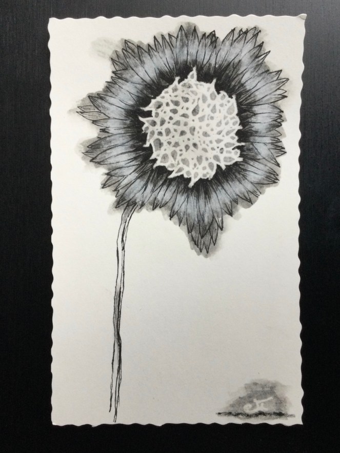 Ik was ook echt van plan om er iets anders mee te doen, omdat ik hem zo ‘stekelig’ vond, maar tijdens het tekenen veranderde het gevoel toch in waardering, dus de eindversie is zoals verteld. Wat uiteraard niet betekent dat er nog veel meer mee kan! Zie hier het resultaat!