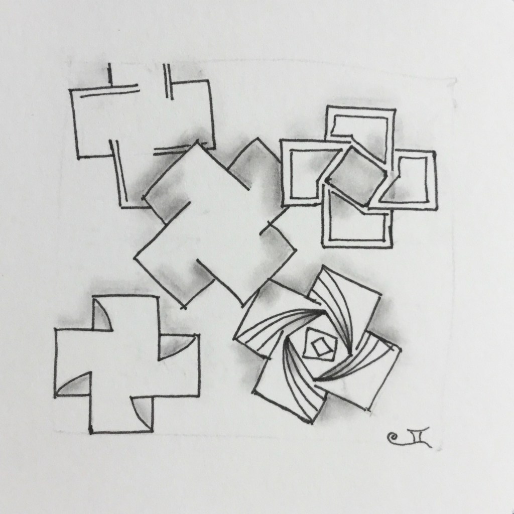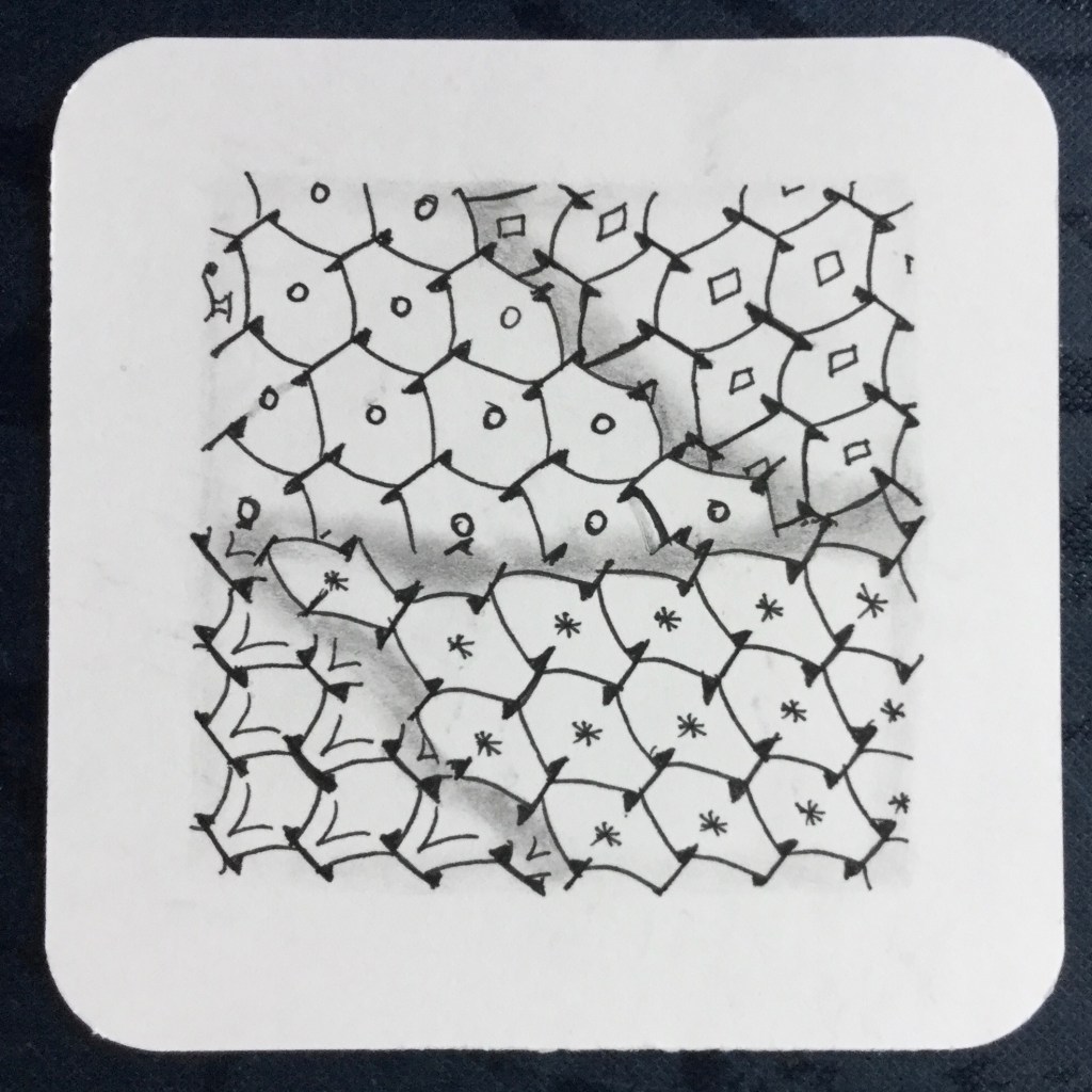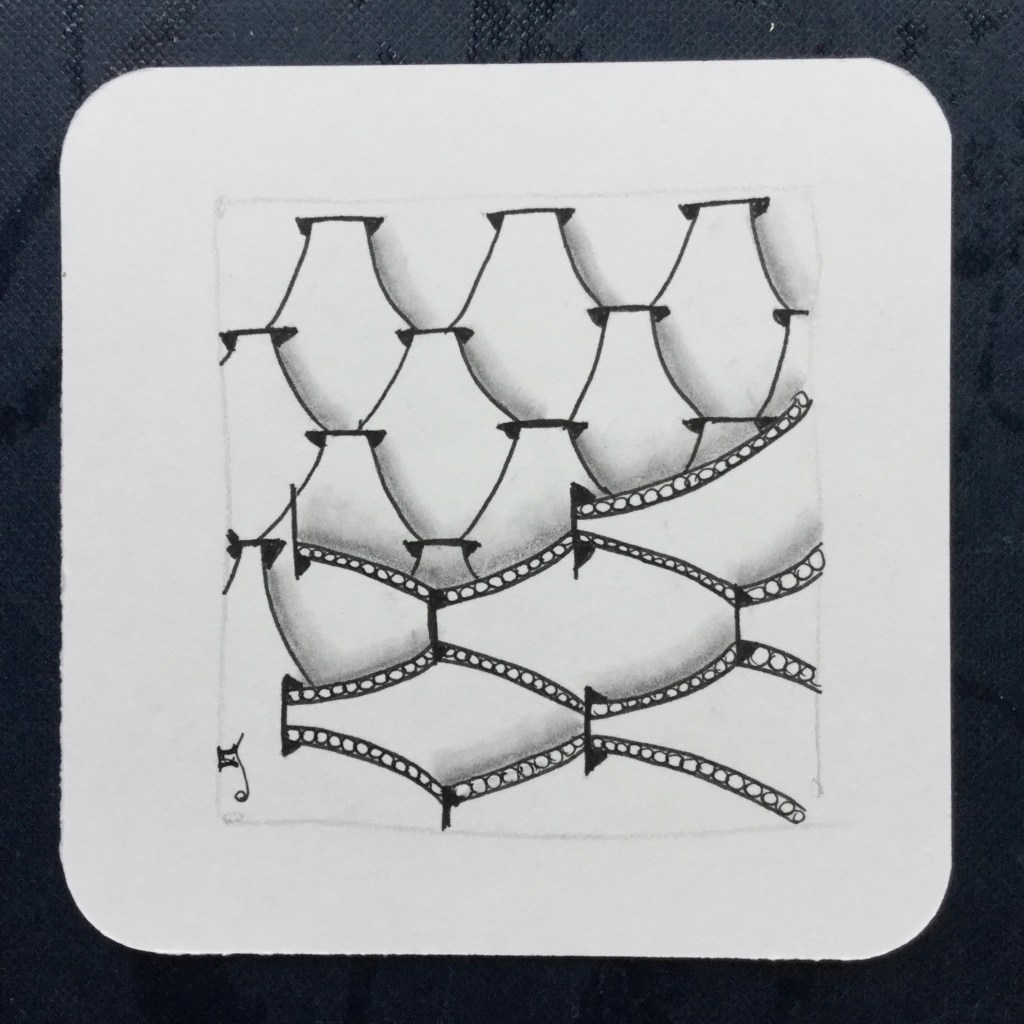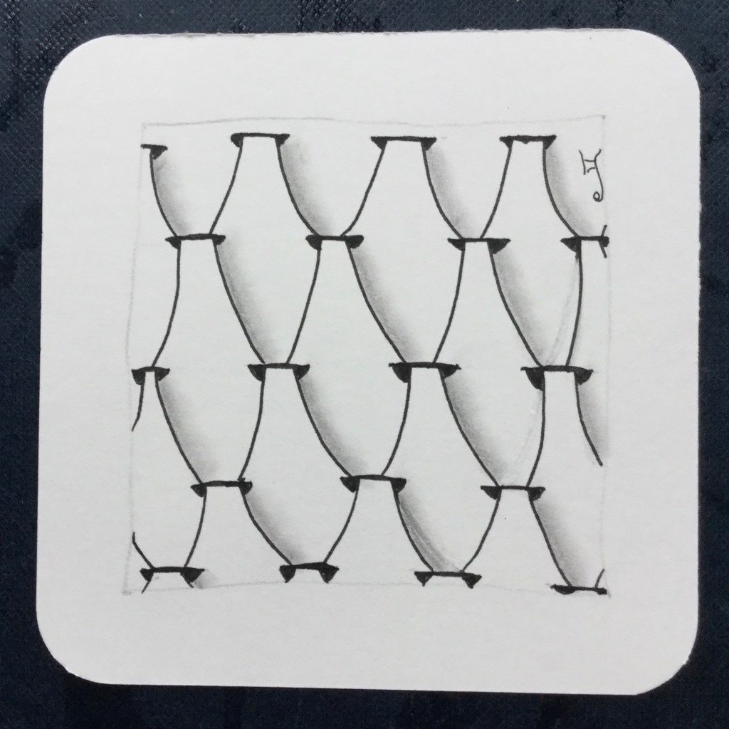In februari 2017, nog voordat ik Certified Zentangle Teacher was, was ik aan het tekenen en bleek spelenderwijs een nieuwe tangle te hebben ontworpen. Nu bestaan er al zoveel tangles, dat dat nog maar bewezen moet worden!