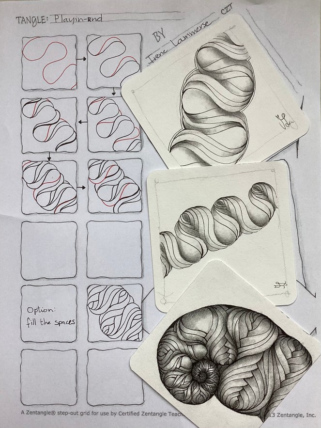 Het is nog niet 100% zeker dat het een nieuwe tangle is, er zijn er namelijk een paar die hier veel op lijken, maar totdat dat gezegd wordt claim ik deze tangle als mijn aanwinst. Hier is Playin-rnd. Probeer hem uit en speel er (verder) mee, ik ben benieuwd wat jullie er van maken…..